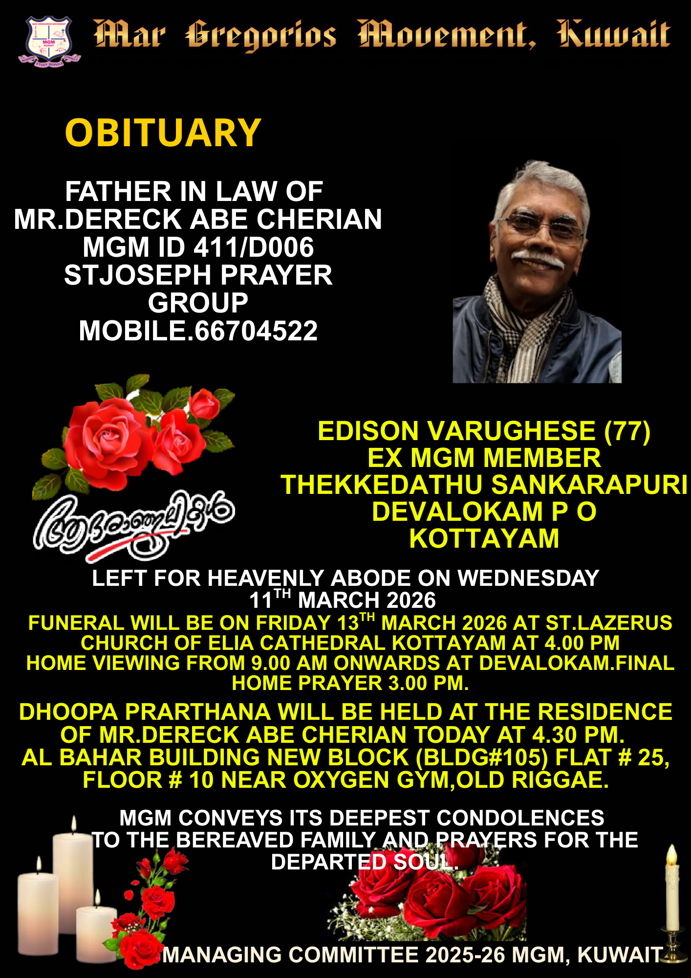 OBITUARY - EDISON VARUGHESE (77)